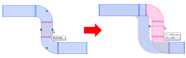 在路由中心显示配管等圆形路由的移动控制柄,在两侧显示矩形风管及电缆桥架等矩形路由的移动控制柄。